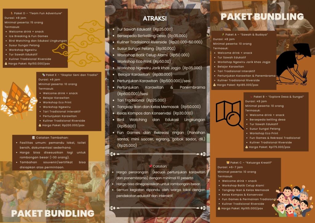 Di sini, Anda akan menemukan harmoni alam, budaya, dan keramahan masyarakat yang berpadu indah. Setiap paket wisata dirancang untuk menghadirkan pengalaman autentik: bersepeda menyusuri sawah, belajar bertani dengan cara tradisional, merasakan sensasi susur sungai, hingga mencicipi kuliner khas buatan warga. Seni dan budaya lokal seperti karawitan, tari tradisional, dan kerajinan tangan menjadi bagian tak terpisahkan dari perjalanan Anda. Dewi Pandang bukan sekadar tujuan liburan, tetapi ruang untuk belajar, berbagi, dan terhubung dengan kehidupan desa yang hangat dan penuh cerita.